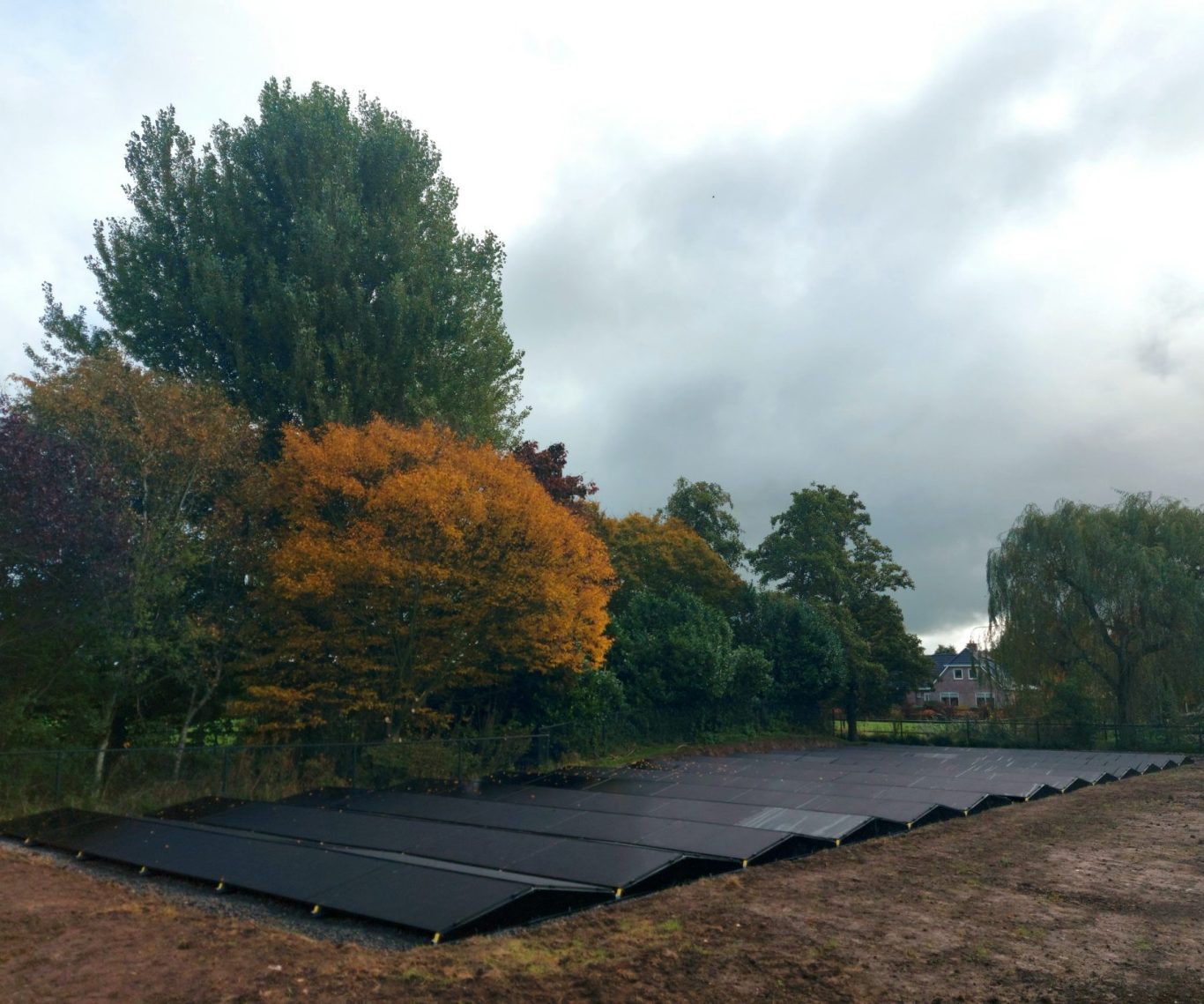 Op het grote perceel van deze woning was meer dan voldoende ruimte om middels een veldopstelling een groot aantal panelen te plaatsen. Wij hebben hier een Sunbeam Nova draagconstructie geplaatst en hier 156 panelen op aangebracht. Het geheel is middels optimizers aangesloten op 2 Huawei omvormers.
