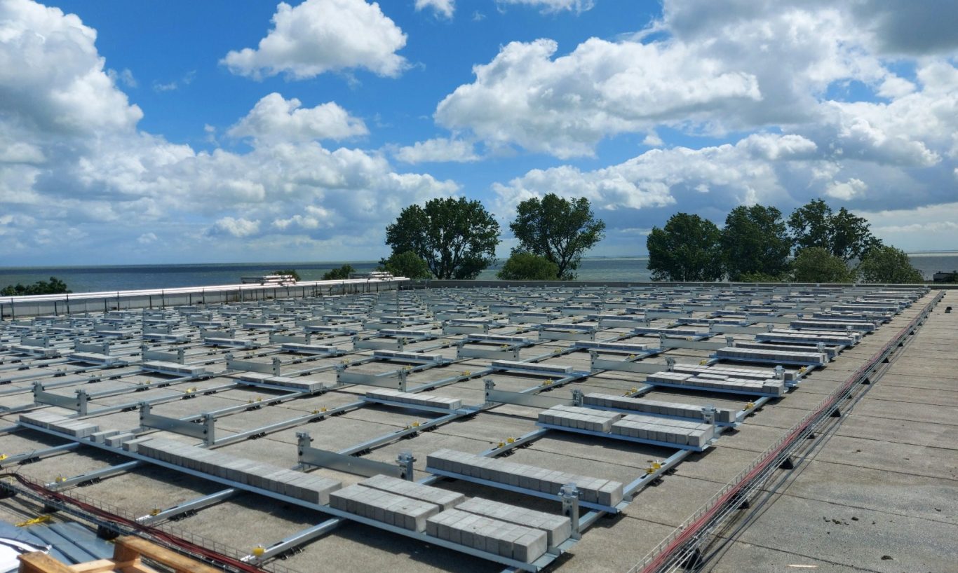 Voor de verduurzaming van dit pand hebben wij een totaal van 700 PV panelen mogen aanbrengen op een Blubase draagconstructie en middels optimizers aangesloten op 6 SolarEdge omvormers.